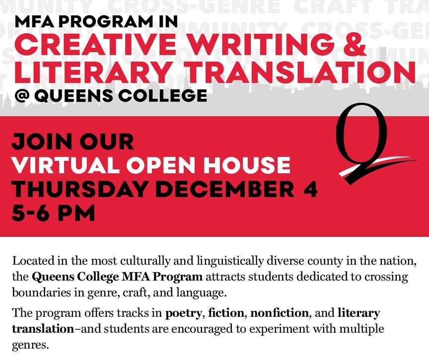 The Queens College MFA Program offers one of the most affordable tuition rates for national MFA Programs. Check out our Bursar’s page for more details: